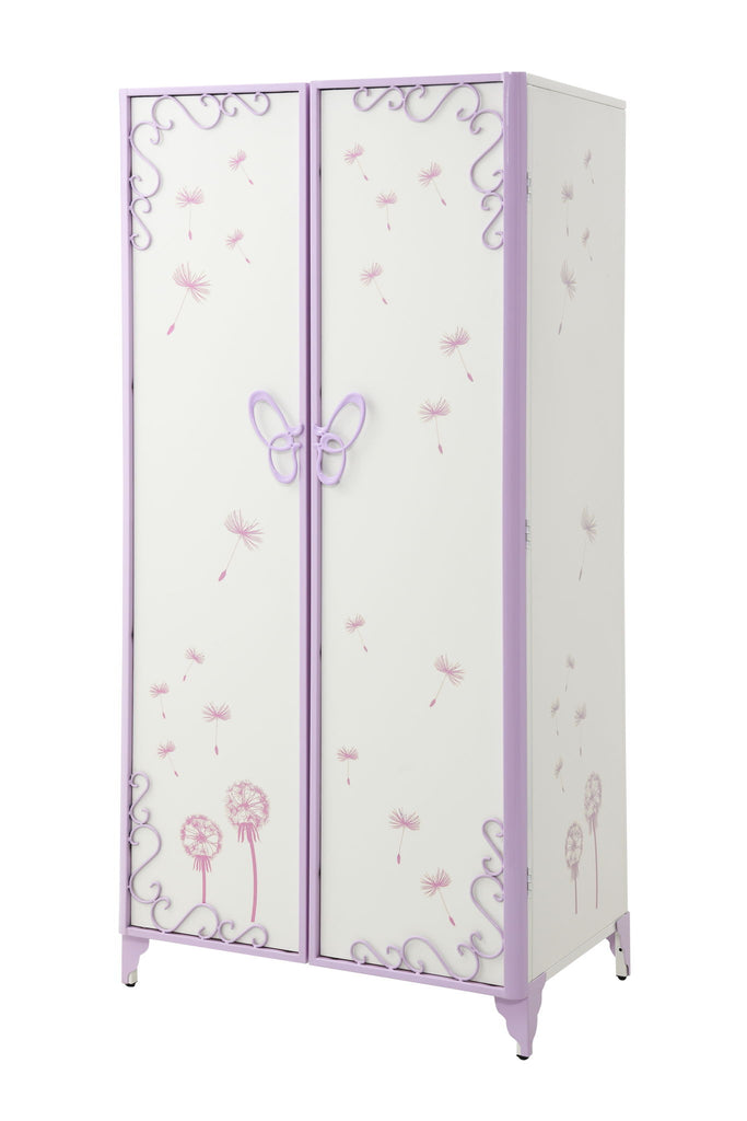 • Elegant Butterfly Design: This wardrobe features intricately designed metal doors with butterfly and scrolled trim, accented by PU leather purple dandelion decorations, creating a sophisticated and unique appearance.