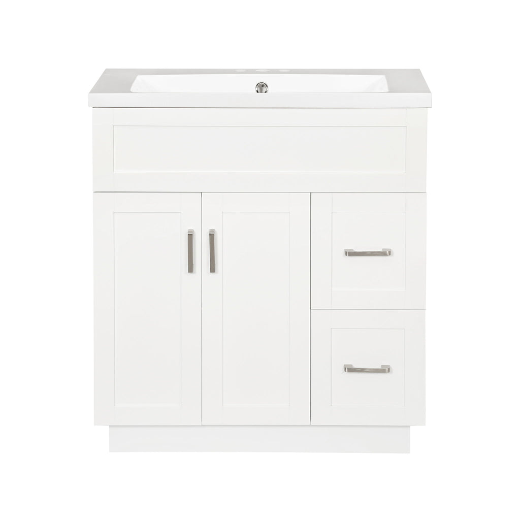 Bathroom Vanity With 2 Doors, 2 Drawers, Adjustable Shelf, Hidden Slides & Soft Close Hinges - White