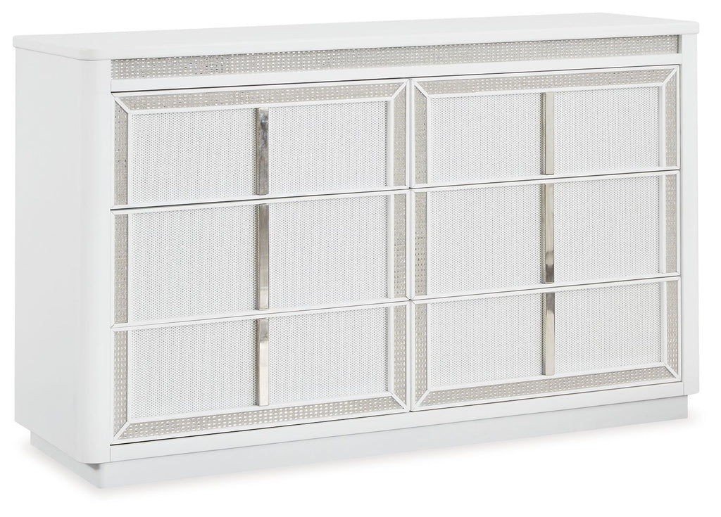 Transform your bedroom with this dresser. Its modern design and glamorous details create a sophisticated retreat. The built-in LED lighting and rhinestone-framed drawers add style and practical storage. Let your sanctuary shine—and never let anyone dull your sparkle.