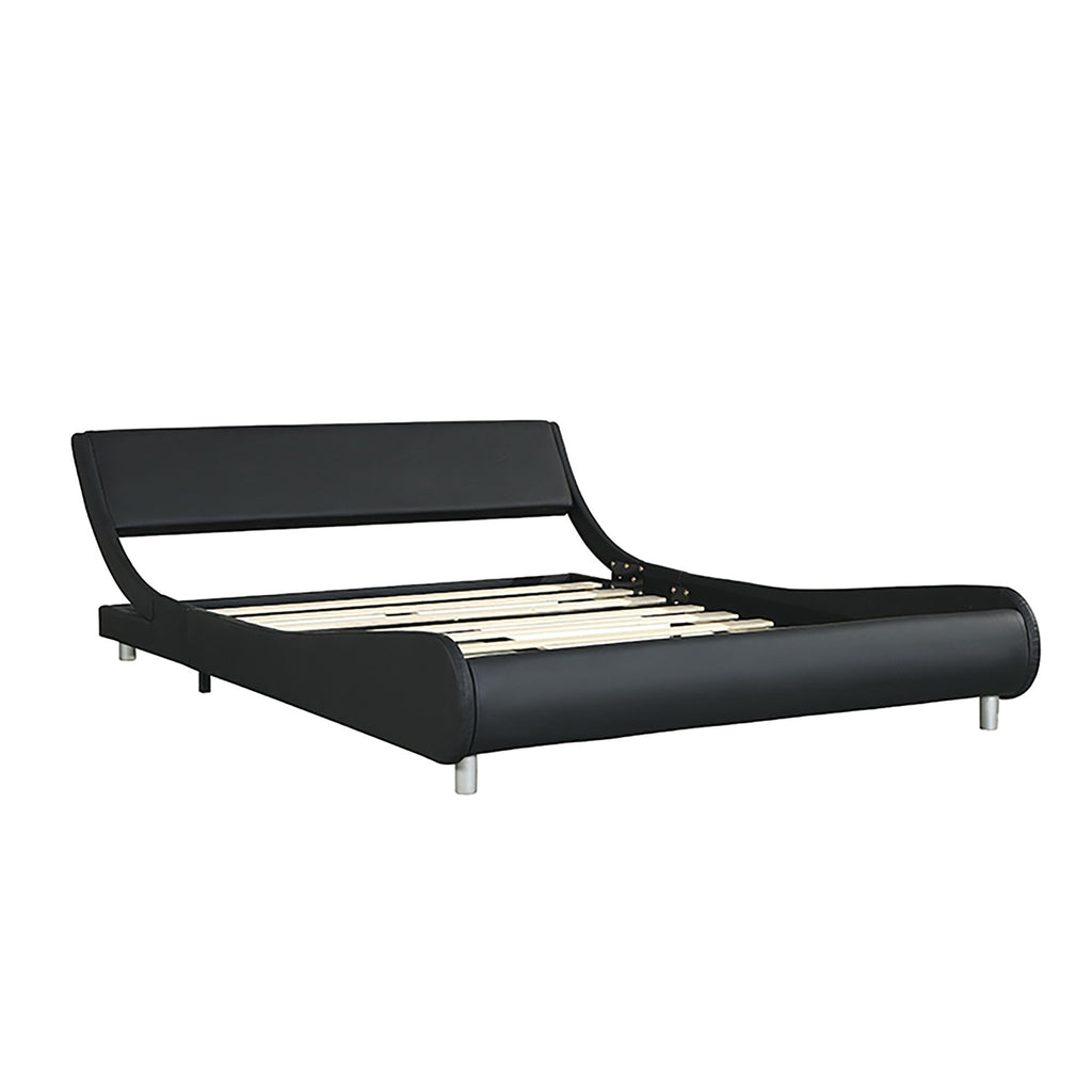 Queen Size Upholstered Platform Bed Frame With LED Lighting, Curve Design, Slat Support, No Box Spring Needed - Black