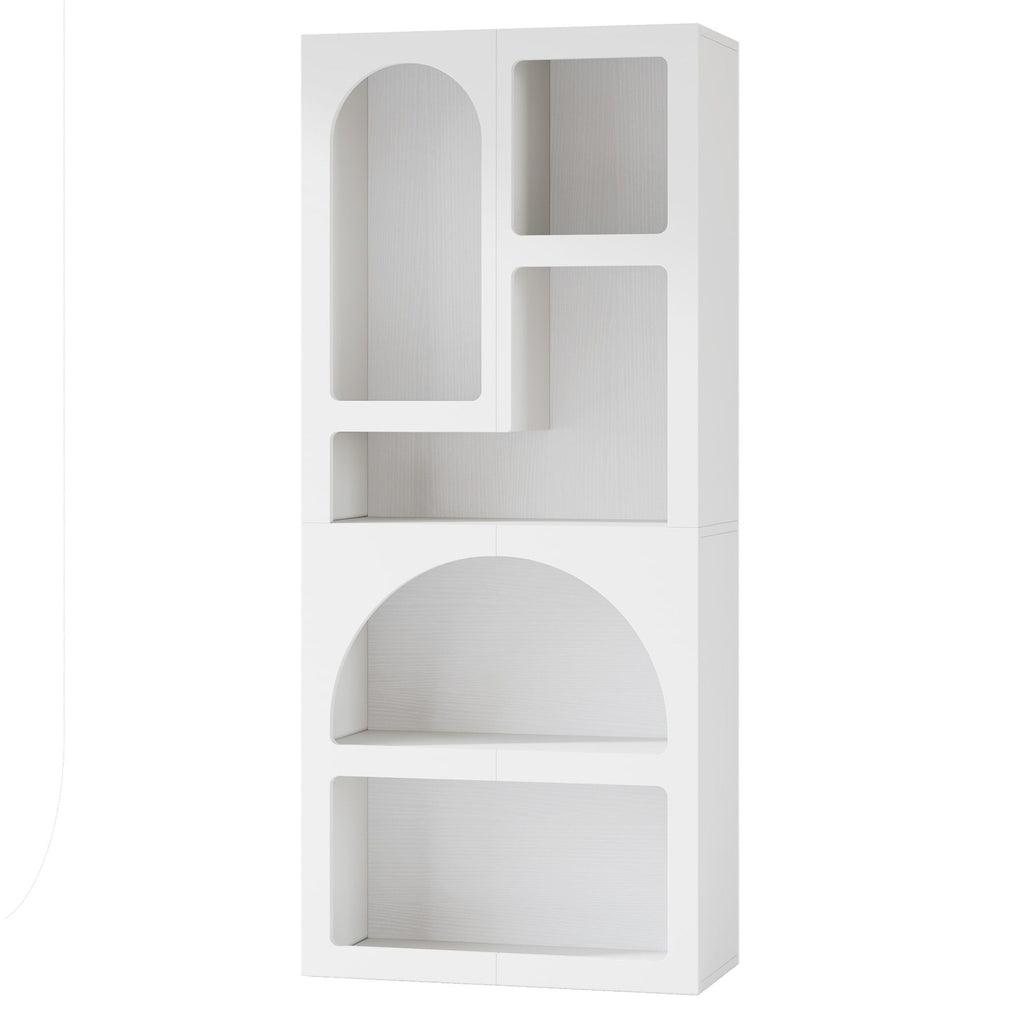 Geometric Arched 5 Shelf Art Display Bookcase For Living Room - White