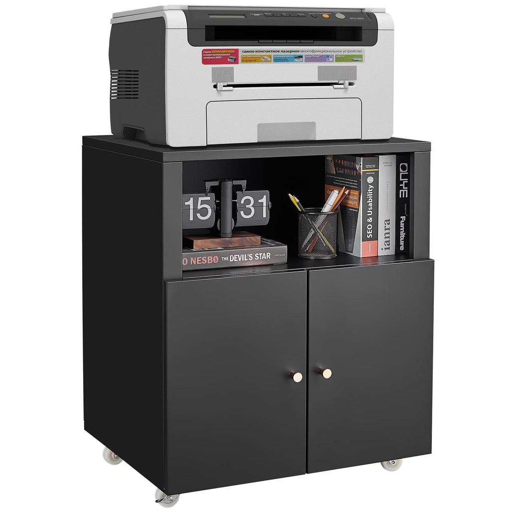 Mobile Printer Stand With Wheels And File Cabinet - Black