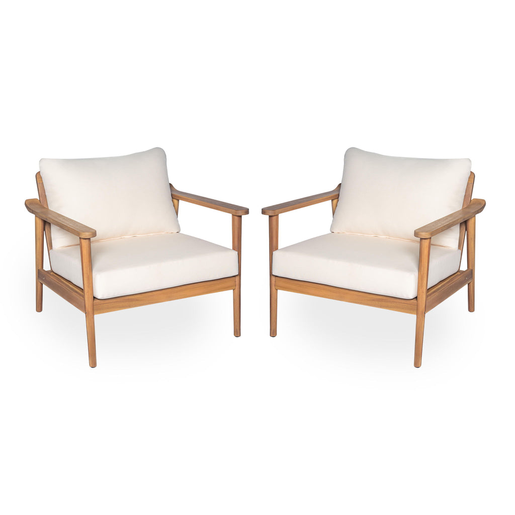 Mid Century Modern Outdoor Lounge Chair Set With Cushions Wood Frame For Patio, Garden, Or Balcony - Teak