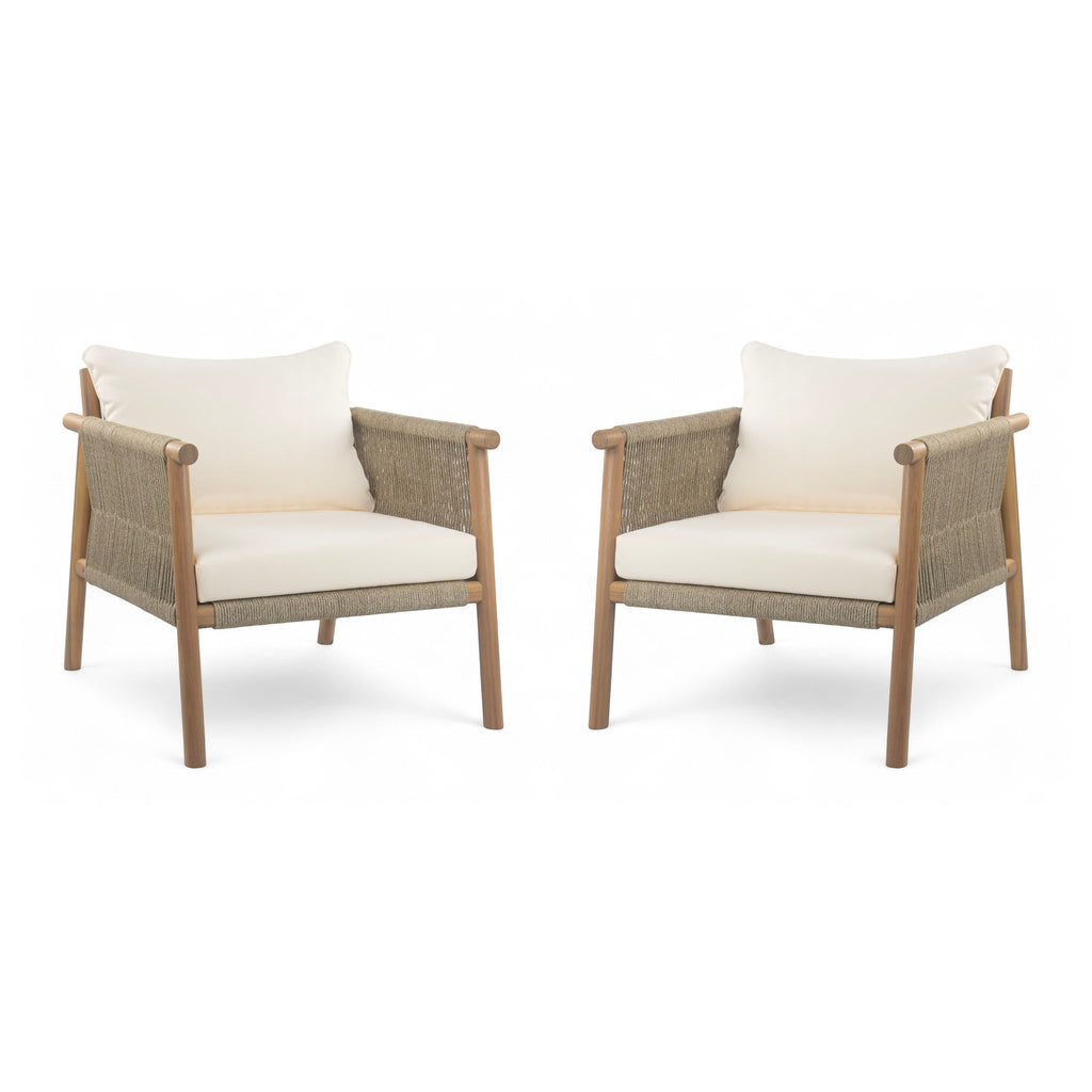 Modern Outdoor Woven Lounge Chair Set With Solid Wood Frame And Polyester Cushions - Teak