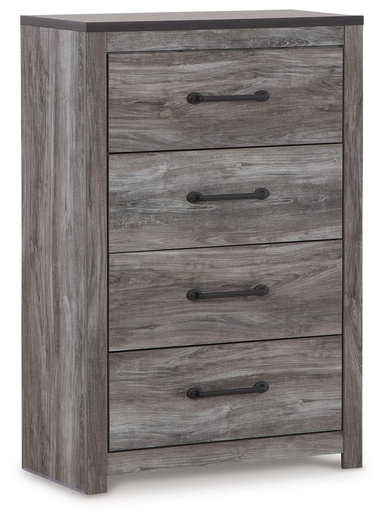 Alluring smoky gray hues create an ambiance that just feels right. This 4-drawer chest has a charming wood-like appeal enriched by a two-tone, textured look. Light neutral shades contrasted by a dark charcoal finish bring a refined yet relaxed feel to contemporary decor and a sense of serenity to your...