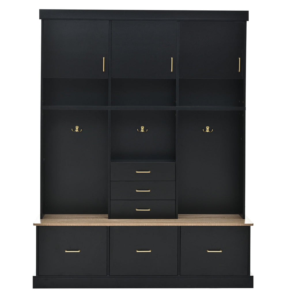 Entryway Hall Tree With Bench And Storage, 5 In 1 Coat Rack, 6 Drawers, 3 Cabinets And 3 Tier Top Storage - Black