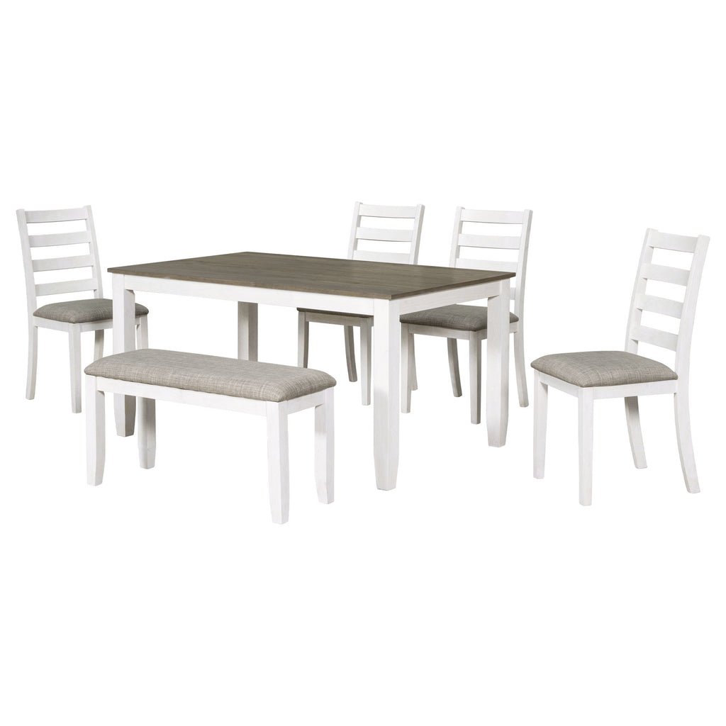 Rustic Style 6 Piece Dining Room Table Set With 4 Upholstered Chairs & A Bench - Brown / Whitewash