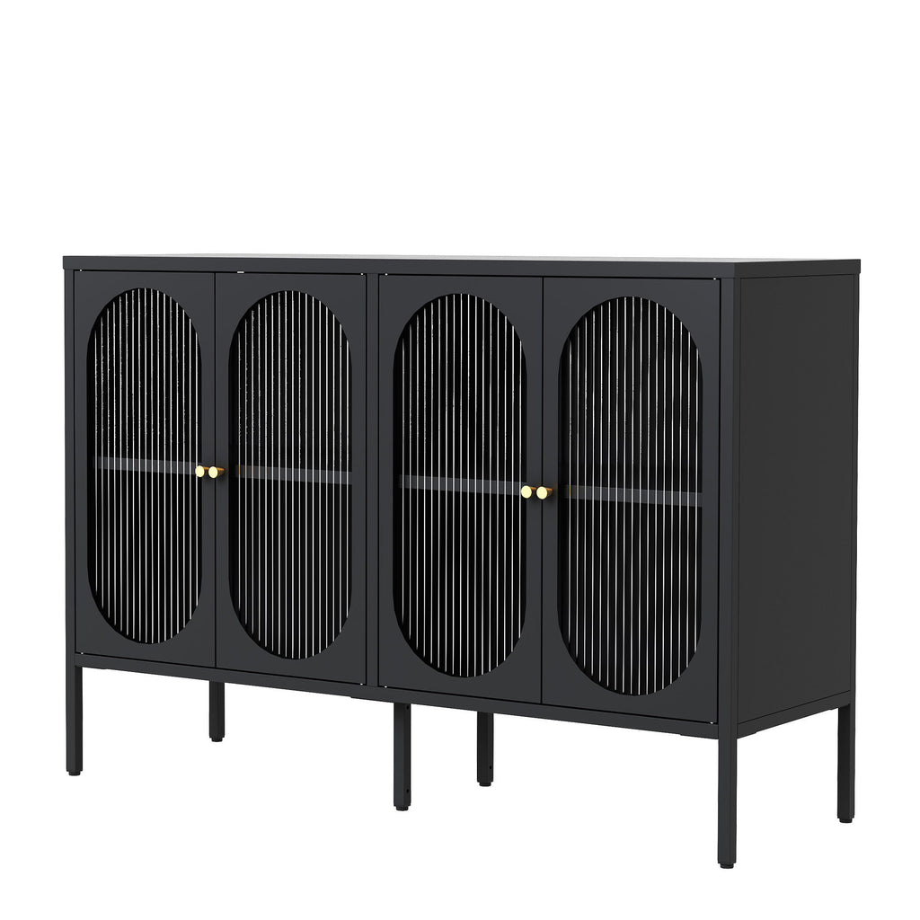Modern Metal Sideboard Cabinet With 4 Glass Doors, Steel Kitchen Storage And Coffee Bar Cabinet - Black