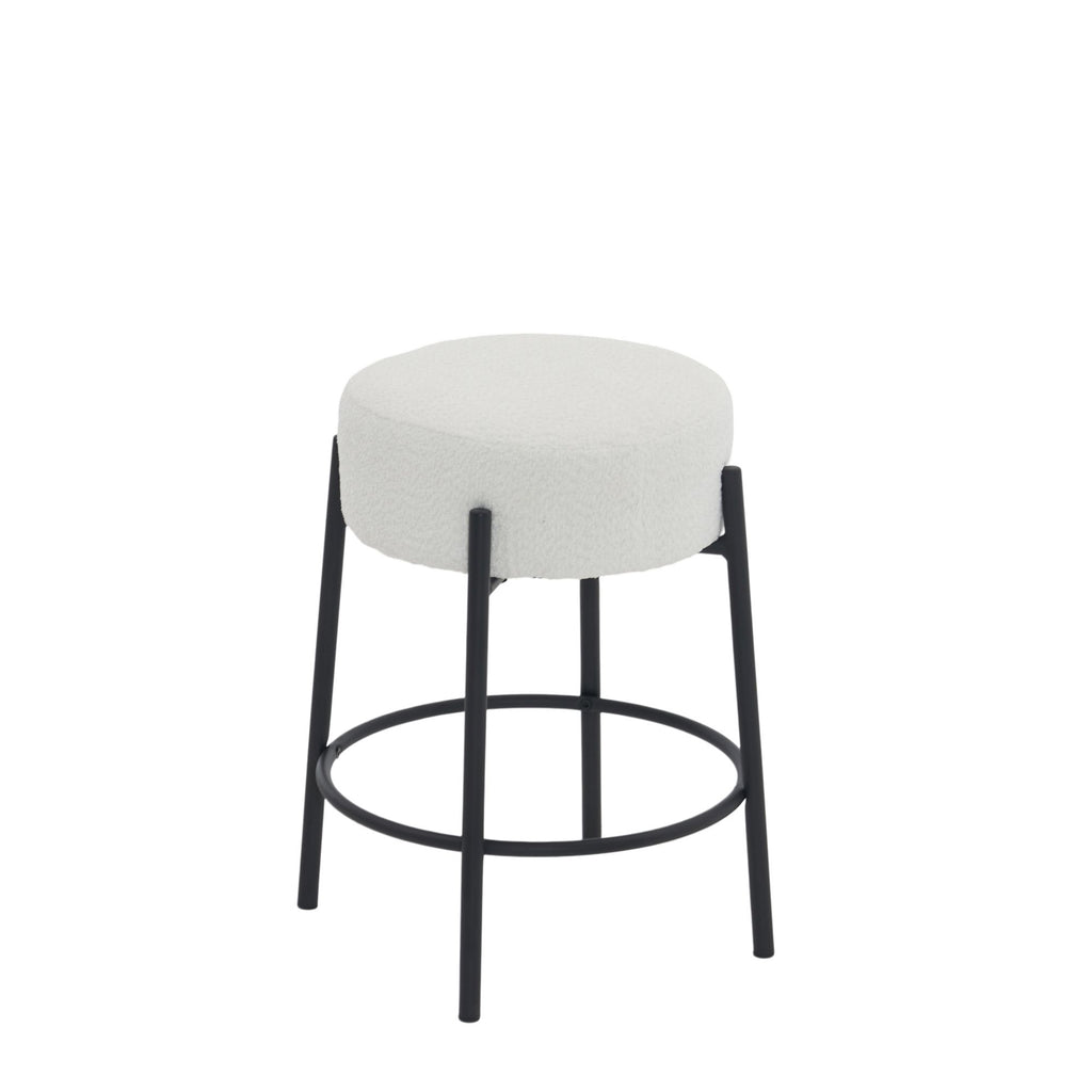 Round Bar Stools (Set of 2), Contemporary Upholstered Dining Stools For Kitchens, Coffee Shops And Bar Stores - White