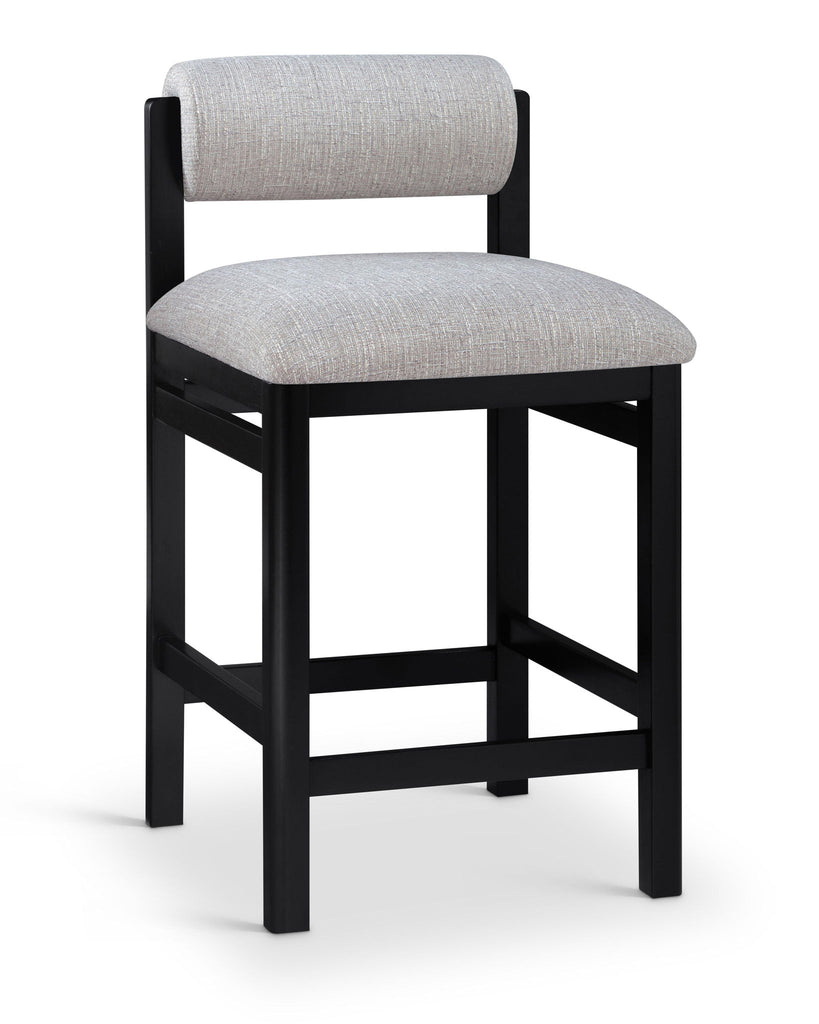 Soft textures and timeless design meet in the Roundhill counter stool, upholstered in a rich linen-textured fabric. A black wood frame enhances its art deco silhouette, bringing warmth and sophistication to your dining space. Whether styled solo or paired with a set, this chair elevates the ambiance with understated elegance.