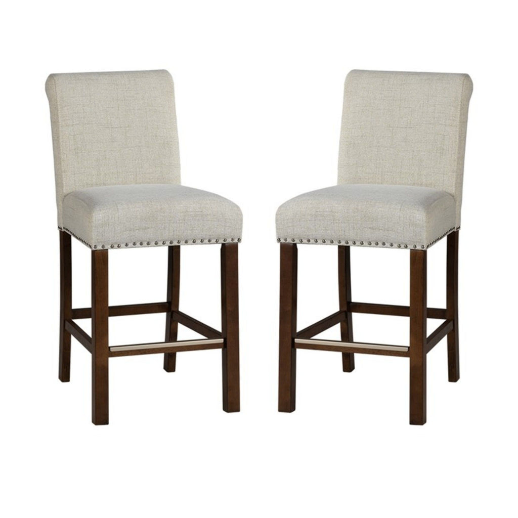Counter Stool With Nailhead Trim (Set of 2) - Beige