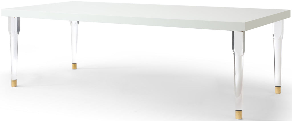 Add an alluring touch to your dining area with the Bethany dining table. This lacquer dining table features a high gloss finish, giving it a clean, elegant appearance just perfect for the minimalist or contemporary home. Crafted from a combination of wood and acrylic, this beautiful table is just the thing to bring a fresh new look to your dining area. Its clear, acrylic legs complement its white tabletop, making it the ideal piece for any dining area.