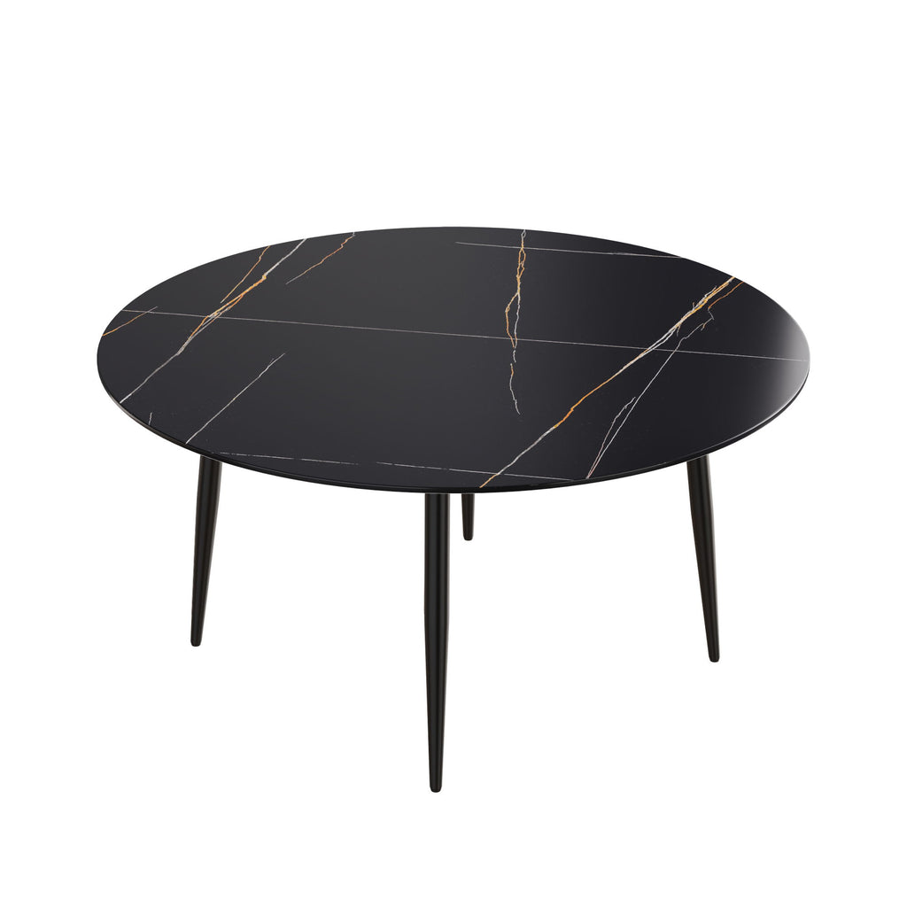 Modern Man-Made Stone Round Metal Dining Table-Position For 6 People - Black