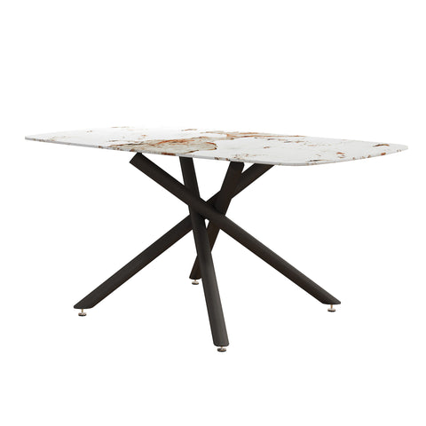 Luxurious Marble Patterned Dining Table With Metal Fork Legs