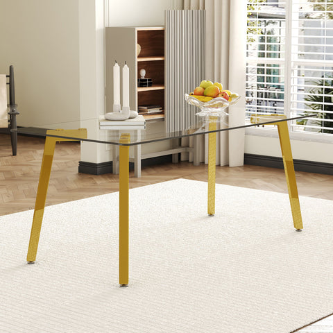 Minimalist Rectangular Dining Table With Transparent Glass Top And Metal Legs