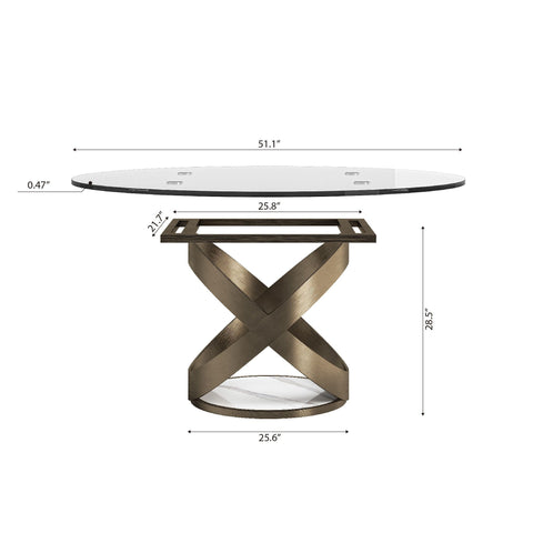 Modern Round Tempered Glass Dining Table With Sturdy Metal Legs For 1 - 4 People - Gold