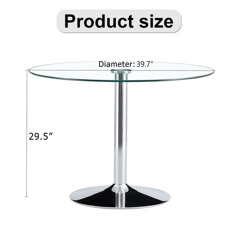 • Modern Minimalist Circular Dining Table With Glass Top And Electroplated Metal Legs For Restaurants And Living Rooms - Silver / Transparent Modern Minimalist Circular Dining Table With Glass Top And Electroplated Metal Legs For Restaurants And Living Rooms - Silver / Transparent