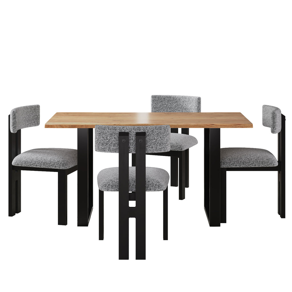 Mid-Century Style: Offers a sleek and warm aesthetic for your dining area. Acacia Wood Top: Durable and exotic wood that resists wear and outdoor elements. Comfortable Seating: Ergonomically curved backrests provide long-lasting comfort. Sturdy Construction: Lightweight metal legs with high load-bearing capacity. Protective Features: Anti-scratch and anti-noise pads protect floors...