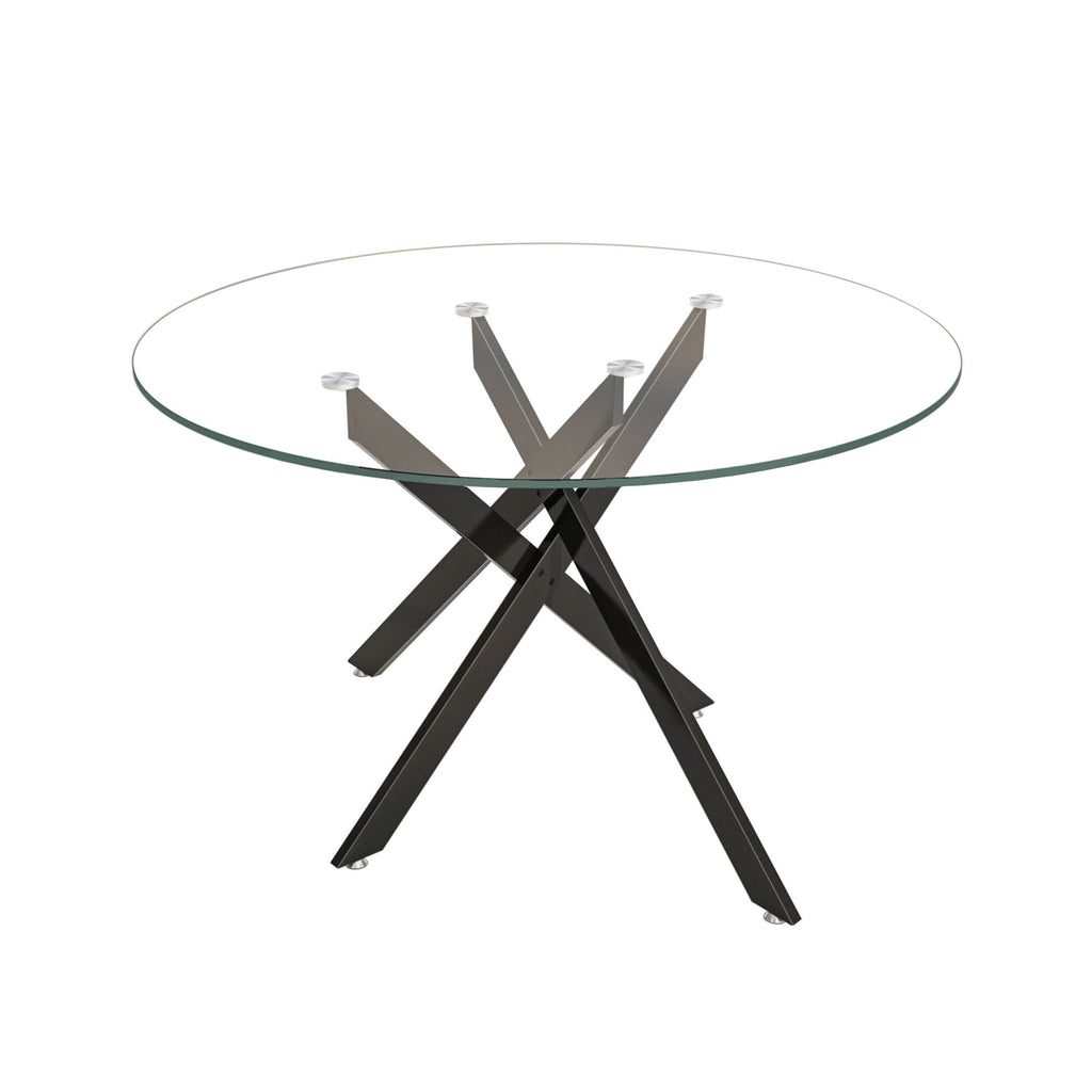 Stylish Round Clear Tempered Glass Dining Table With Metal Legs