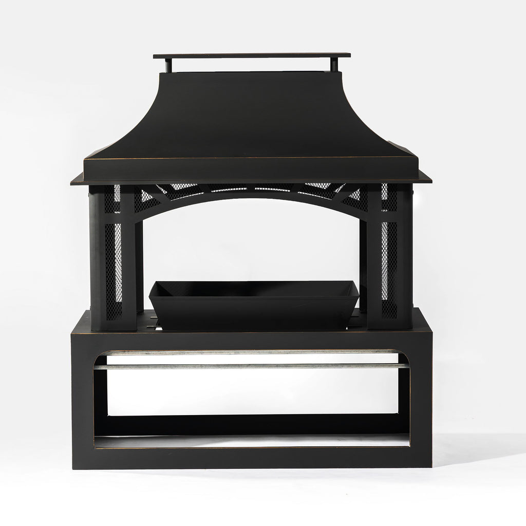 - Handy Convenience: Comes with a fire hook for log adjustment and a weather cover cover for storage. Removable grill and pan let you switch between fireside comfort and outdoor cooking with ease.