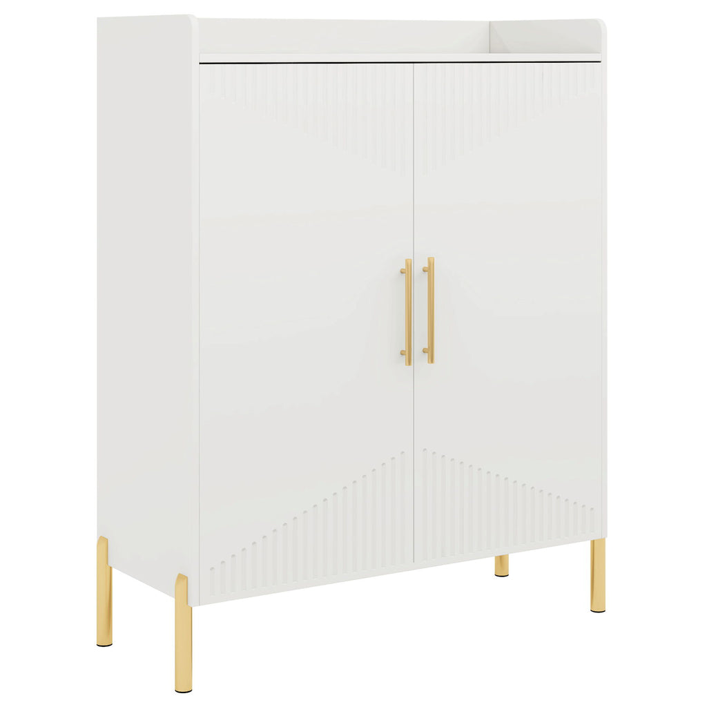 Elegant Modern Design: metal legs and slim gold handles on carved doors for a refined look in any room Spacious 6-Tier Storage: Holds up to 30 pairs of shoes across six levels with a raised-edge countertop for keys or decor Adjustable & Ventilated: Five shelves with three height positions and...