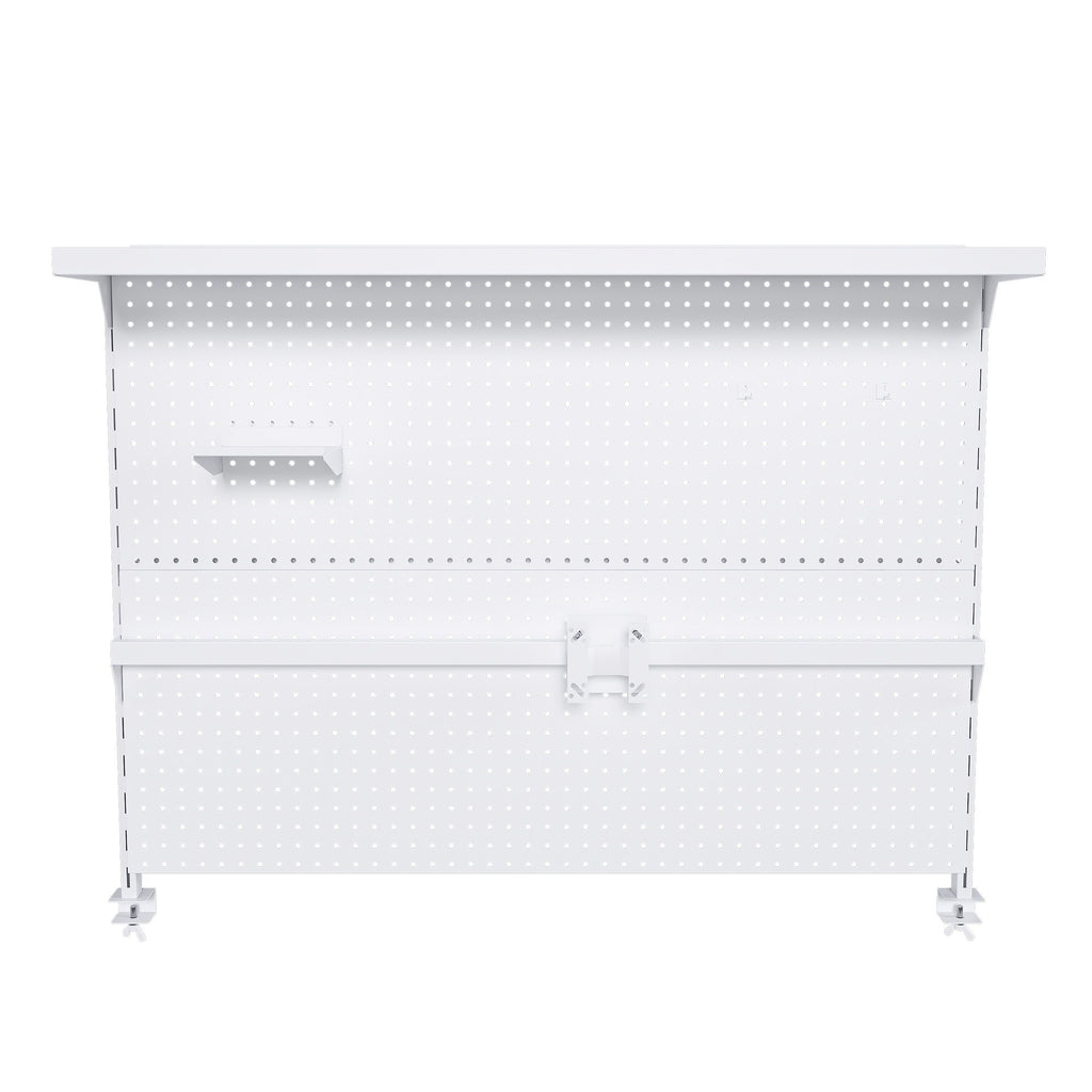Clamp On Desk Pegboard With Single Monitor Stand, Organizer With Hooks & Movable Panel - White