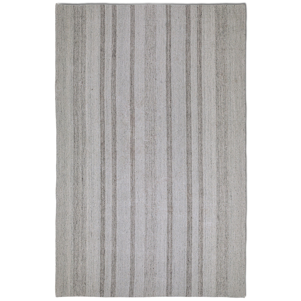 DIMENSIONS: 6 ft x 9 ft 72"d x 108"w x 0.3" h Durable Blend of 78% Wool 9% Cotton 8% Polyester 5% Other Fiber Rug Thickness: 0.3" Durable hand woven construction Detailed with a geometric stripe pattern in Ivory and Grey No Backing - Rug Pad recommended - Indoor Use...