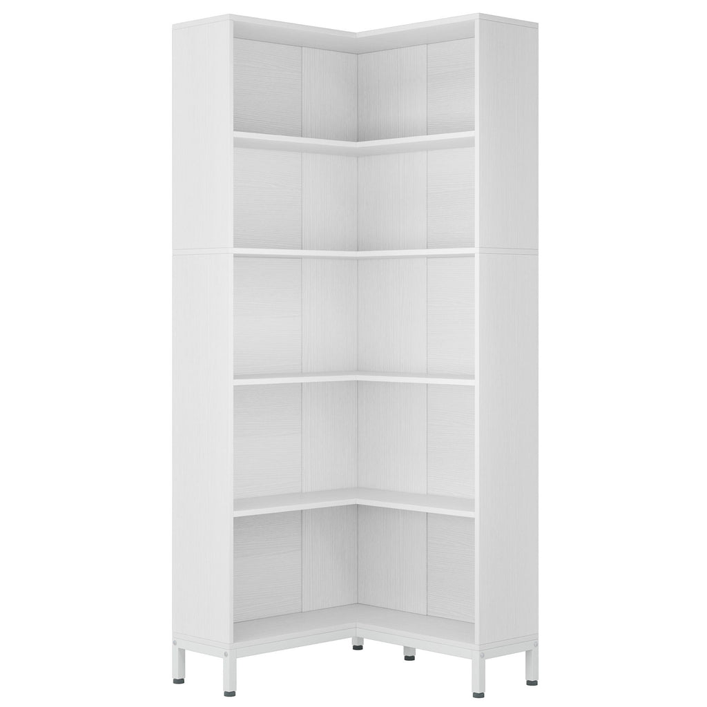 L-Shaped Bookcase, 5 Tier Freestanding Corner Bookshelf, Storage Rack - White