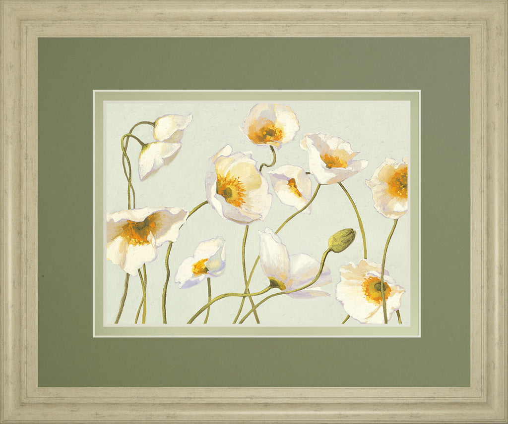 White Bright Poppies By Novak - Framed Print Wall Art - White