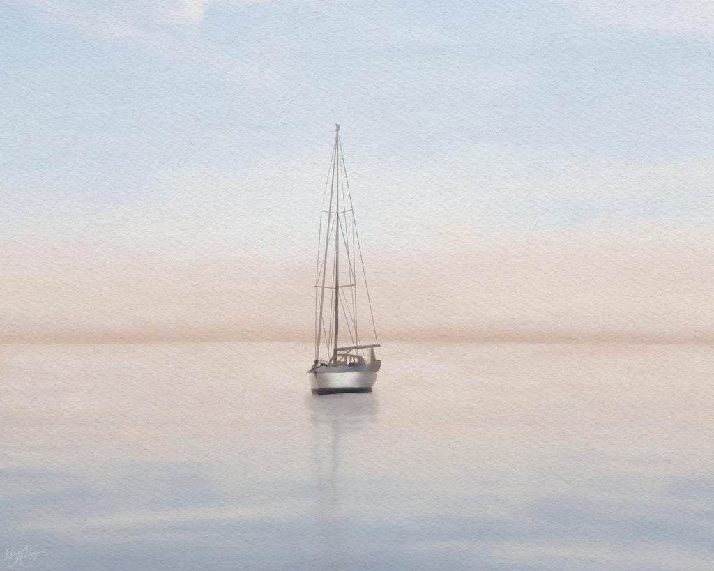 Quiet Morning Sail I By Elizabeth Medley - Light Blue