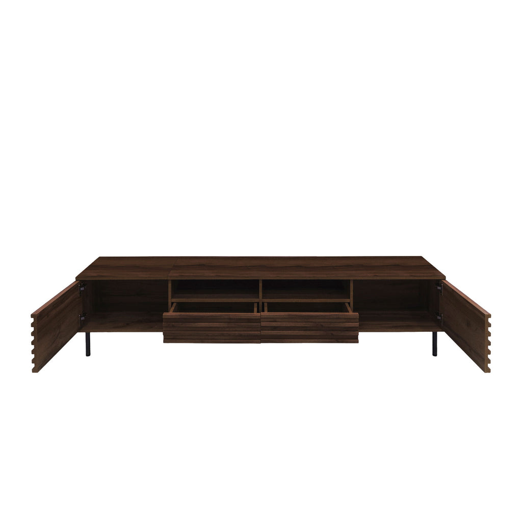 - Organized Entertainment Hub: Multiple slatted doors offer discreet storage, combining aesthetic texture with practical organization for media and accessories.