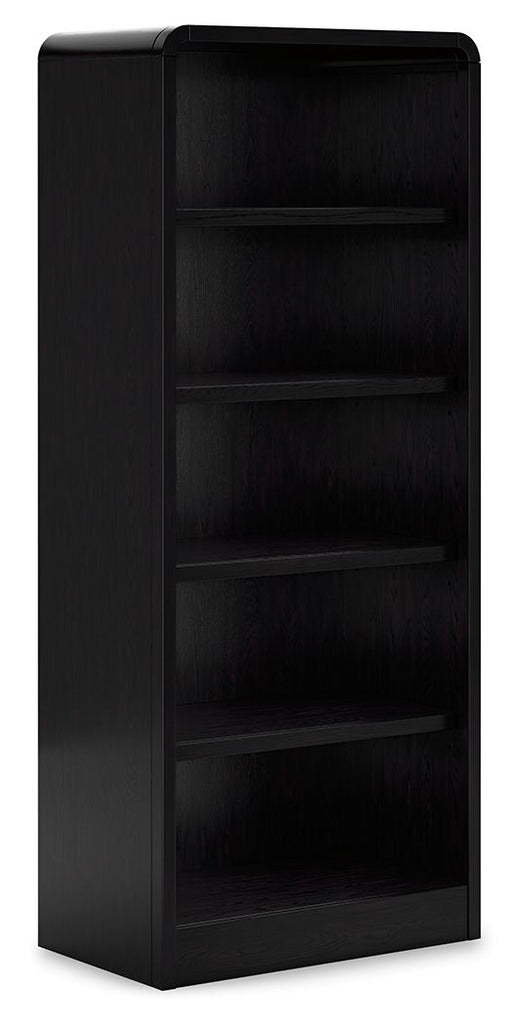 Inspired by art deco design, this softly shaped bookcase makes a lasting impression in a simply stunning way. Its magnificent curved silhouette is enhanced by a rich layered black finish on the textured wood grain surface. Complete with shelves to display items that make you smile, this is the statement...