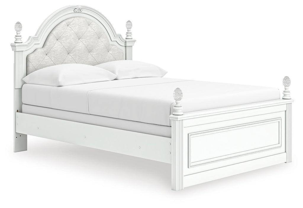 Fit for a princess. This upholstered panel bed’s crisp matte white finish pairs with charming ornate beading and sumptuous button-tufted upholstery—perfect for your girly girl. Decorative ball tops and multicolored LED lighting in the headboard are the crowning touches to make your little one feel like royalty.