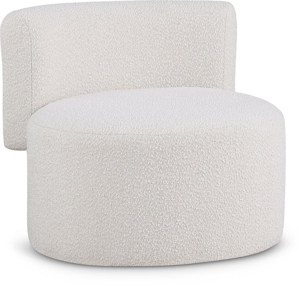 Give your home a new conversation piece with this Como cream boucle fabric accent chair. Its contemporary design is sure to catch eyes whenever you have visitors. Its round seat provides a comfortable place to sit, and a curved back allows you to settle back and relax. Its rich cream...