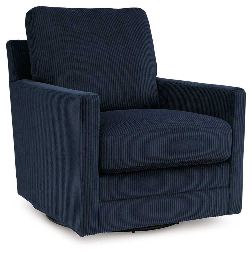 Clean-lined, contemporary style. Relaxed, homey comfort. This swivel chair has it all. Lightweight corduroy upholstery makes it a cozy yet head-turning piece. Factor in the 360-degree spin, and you've got a win-win.