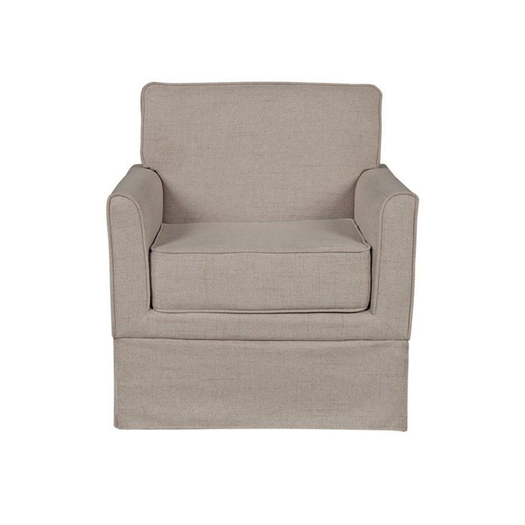 - Classic Design: Timeless slipcover chair with track arm silhouette and skirted base.