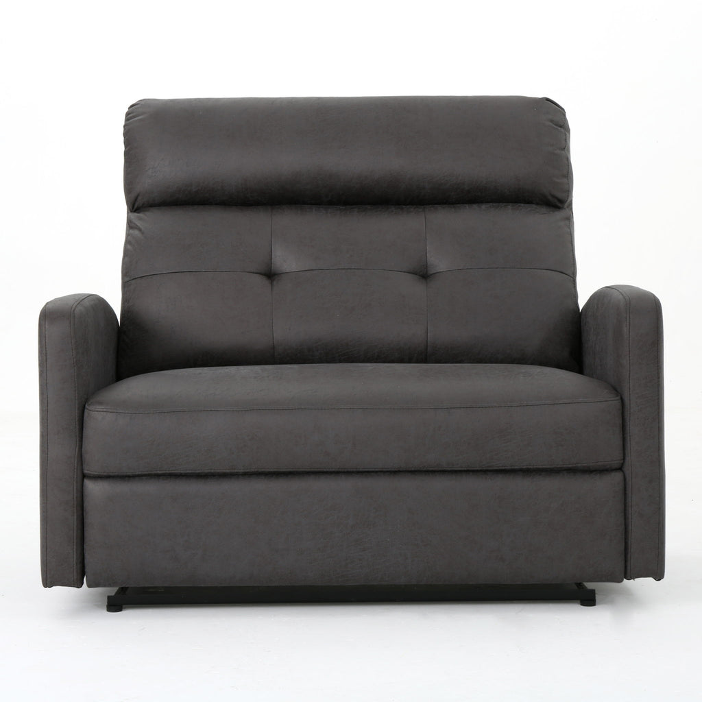 - Contemporary Elegance: This reclining loveseat combines modern aesthetics with refined details like track armrests, waffle stitching, and button tufting for a sleek, sophisticated look that elevates any living space effortlessly.
