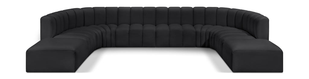 Unleash modern opulence with the Arc Vegan Leather Modular Sofa. Crafted for the modern connoisseur, this sofa injects an air of refined luxury into any space. Its sleek silhouette, upholstered in supple vegan leather, exudes timeless sophistication while the deep channel tufting adds textural intrigue, further elevating the chair's visual appeal. The modular design makes it a versatile chameleon, effortlessly adapting to your evolving needs and preferences. Whether you envision it gracing a chic living room corner, basking in the glow of a bedroom window, or adding a touch of drama to a home office, the Arc seamlessly complements your unique interior aesthetic.