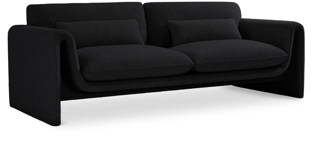 Impress family and guests alike with this Stylus boucle fabric sofa. This modish chair oozes contemporary panache with its curved arms and unexpected design elements. Thickly padded seat and back cushions cradle your body in supportive comfort while the rich boucle fabric caresses the skin and leaves you feeling relax...