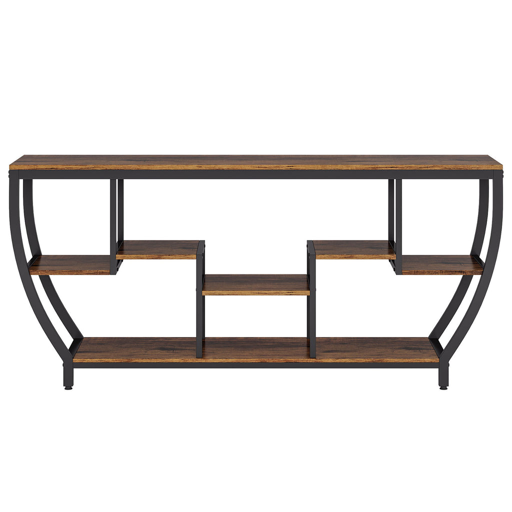 Extra Long Entryway Console Sofa Table With 7 Tier Shelves - Brown / Black