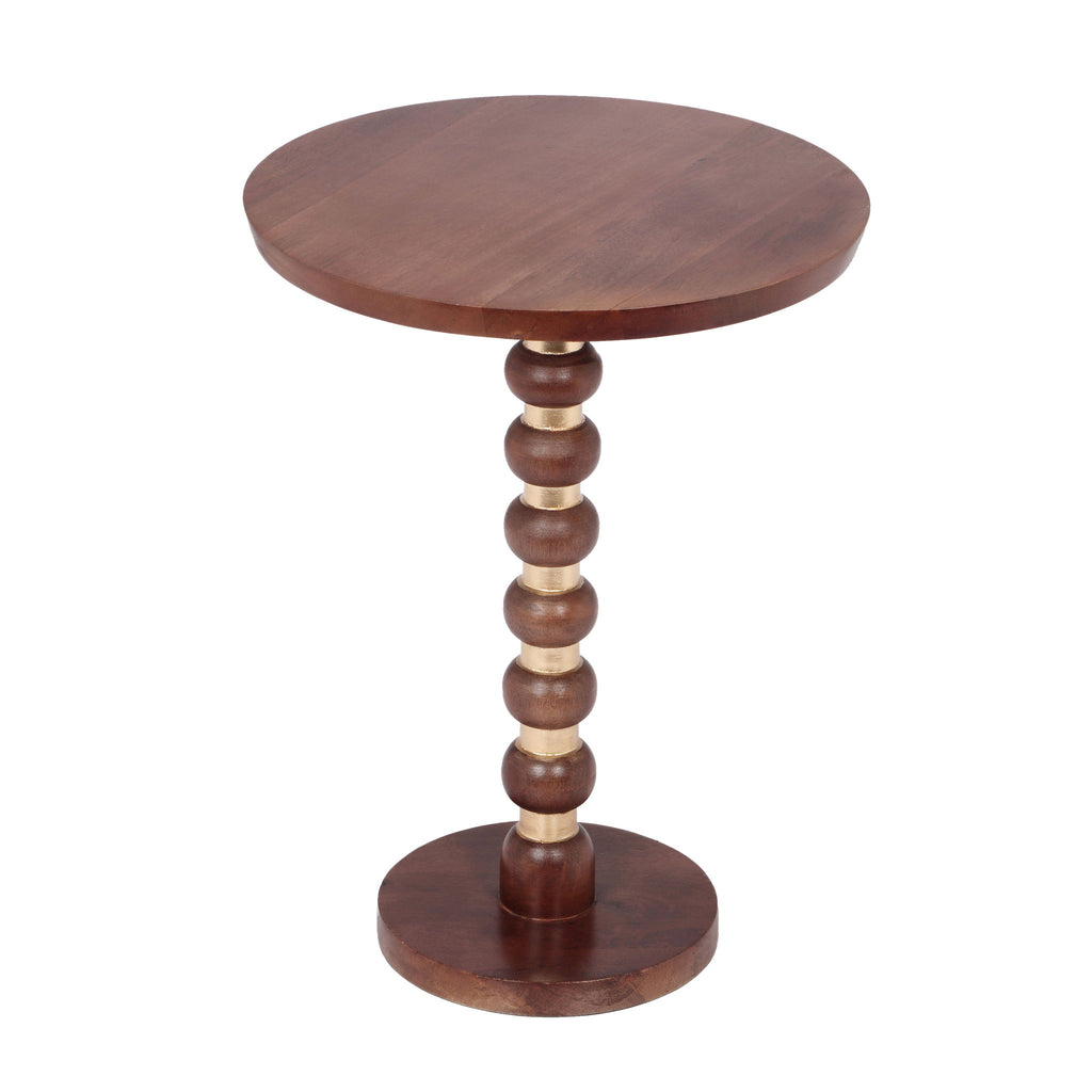 Modern Mango Wood Round End Table With Gold Accents, Solid Wood - Honey