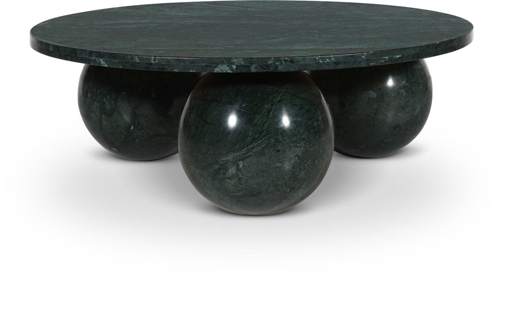 Heads can't help but turn when you add this lovely Spherical coffee table to your space. Three round ball-shaped bases crafted from genuine marble provide a striking foundation that exudes elegance and affluence, complemented by an art deco design that exudes timeless sophistication. This unique coffee table blends luxurious materials with exquisite craftsmanship, promising to be a focal point of any room, where style meets substance in perfect harmony.