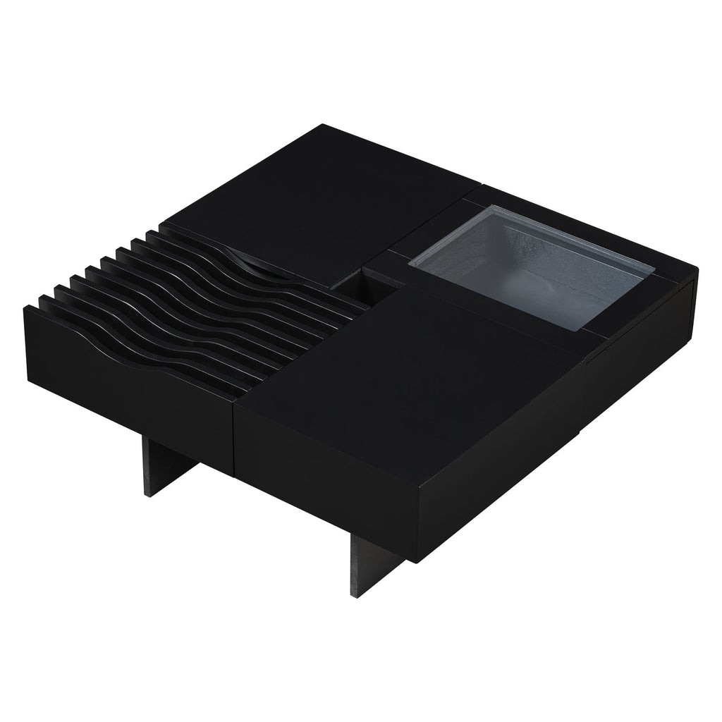 Multifunctional Square Coffee Table: Designed to fit seamlessly into a variety of room styles. Whether placed in a modern living room, a cozy family room, or even a sleek office space, its versatility allows it to complement contemporary. Wave Design: This section can be used for displaying floral arrangements, books,...