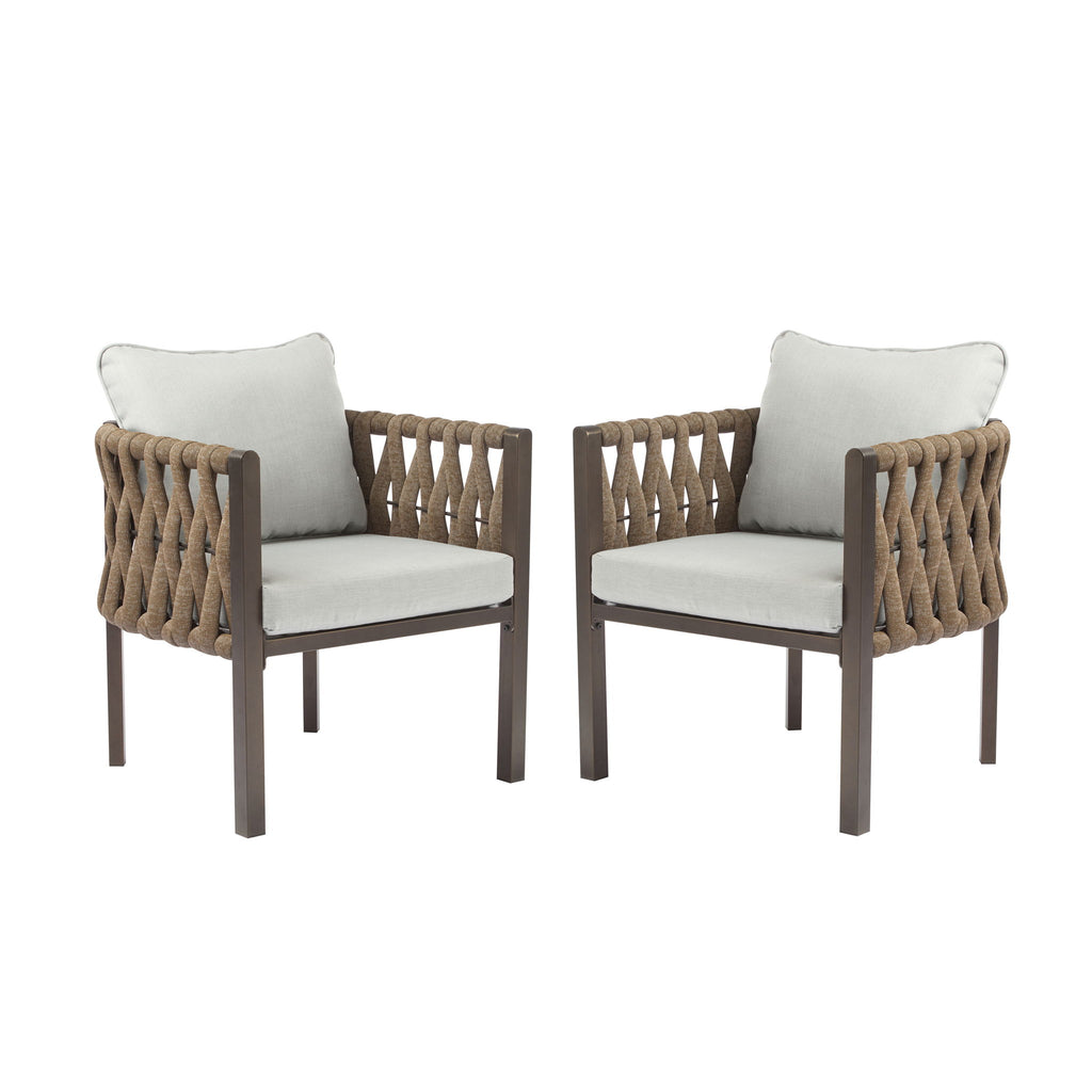 2 Pieces Outdoor Metal Patio Club Chair, Patio Furniture Arm Chair With Cushion, Modern Outdoor Furniture Deep Seating For Porch, Garden, Backyard, Balcony - Brown / Light Gray
