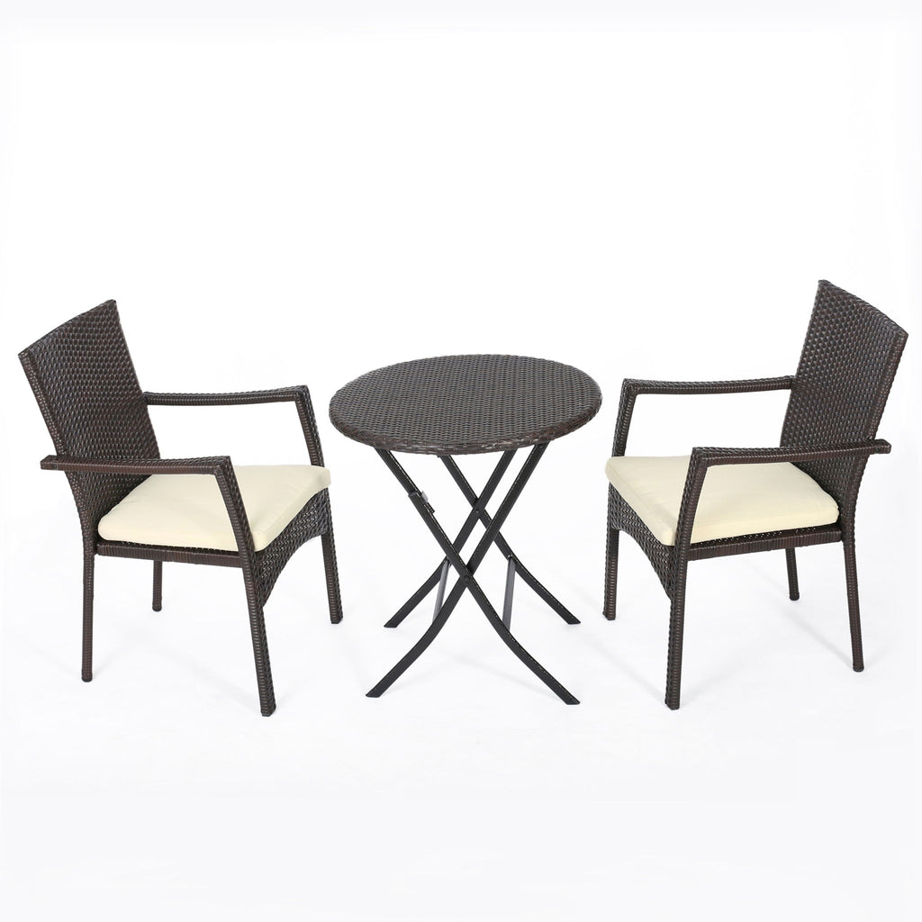 3 Piece Bistro Set With Water Resistant Cushions And 2 Chairs - Brown Multi