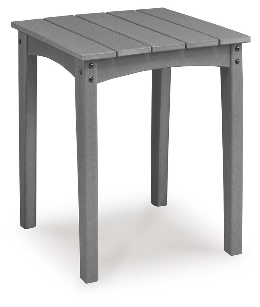 This outdoor end table prioritizes versatile style and comfort, all while providing the durability you need al fresco. Crafted of a sturdy, wood-look material, it withstands the elements with ease. A slatted design that sheds rainwater rounds out the piece with added function.