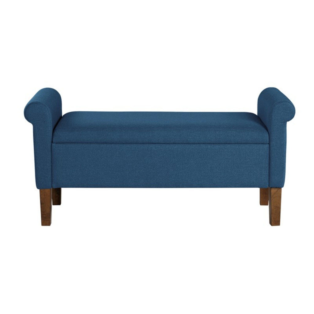 Upholstered Storage Bench With Rolled Armrests - Blue